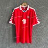 The 1998 Denmark away shirt presented a clean white base with red details on the shoulders and collar, paired with white shorts and socks. It carried the same modern Hummel design as the home version. This kit was worn during the 1998 World Cup, including the memorable 4–1 win over Nigeria in the Round of 16.