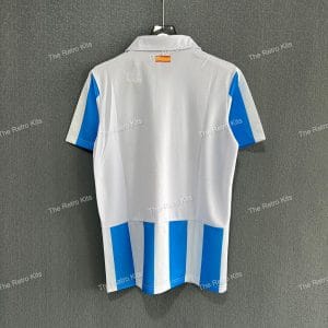 Return To ShopMálaga CF is a Spanish football club founded in 1904. Known as “Los Boquerones” (The Anchovies), the team is recognized for its blue and white colors, which feature in their traditional striped home kits. They play at the Estadio La Rosaleda, a 30,000-seat stadium in Málaga.The club has had ups and downs, with its most successful period coming in the 2012-13 season when they reached the Champions League quarter-finals. Over the years, players like Isco, Juanmi, and Duda have stood out for the team. Despite financial struggles and relegations in recent years, the fans remain loyal, hoping for a return to better days.Málaga CF’s crest includes a golden shield with the club’s name and a coastal design, keeping their identity tied to the city’s seaside culture. While they’ve faced challenges, the club remains an important part of Spanish football history.