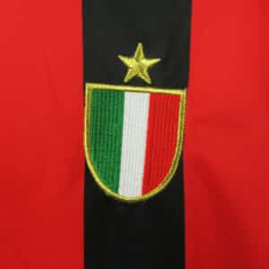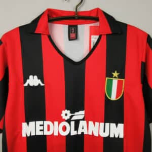 Worn by Franco Baresi, Marco van Basten, and Ruud Gullit during a legendary season under Arrigo Sacchi, culminating in European glory with a dominant 4–0 victory over Steaua Bucharest in the European Cup final.