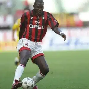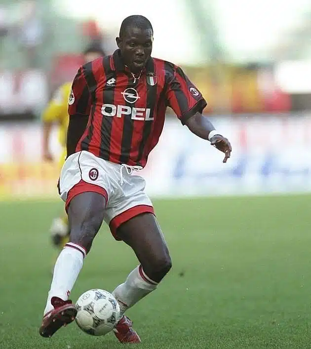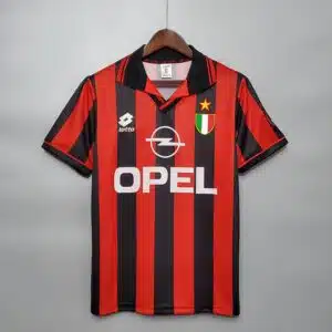 Worn by George Weah, Roberto Baggio, and Paolo Maldini during a challenging Serie A season marked by managerial changes and a transition period for the Rossoneri