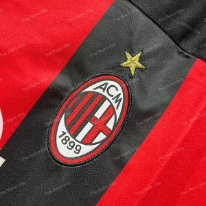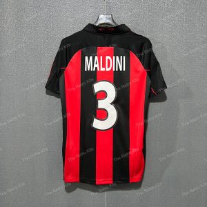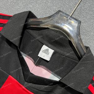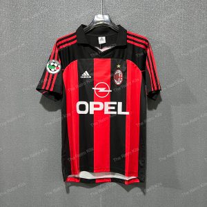 The 2000–02 AC Milan home shirt featured the club’s iconic red and black vertical stripes, paired with black shorts and black socks. It displayed the Opel sponsor across the chest alongside the club crest, maintaining the classic Rossoneri identity. This kit was worn by legends such as Paolo Maldini, Andriy Shevchenko, and Rui Costa during Serie A and Champions League campaigns. Although the period was challenging domestically, the shirt remains a fan favourite, remembered for Shevchenko’s goals and Maldini’s leadership.