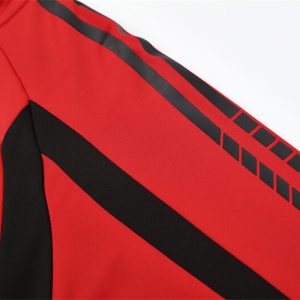 The 2005/06 AC Milan red training suit featured a bold red top with black and white detailing on the sleeves and collar, paired with matching red pants. It carried the Opel sponsor and the club crest on the chest, highlighting Milan’s Rossoneri colors. Worn by stars such as Andrea Pirlo, Clarence Seedorf, and Alessandro Nesta, this training suit was used in preparations for a season that included a strong Champions League campaign, ending in the semi-final against Barcelona.