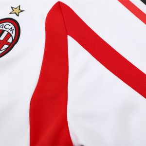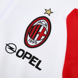 The 2005/06 AC Milan white training suit featured a clean white top with red and black detailing on the shoulders and sleeves, paired with matching white pants. It displayed the Opel sponsor across the chest alongside the club crest, showcasing Milan’s Rossoneri identity. Worn by players such as Paolo Maldini, Kaká, and Andriy Shevchenko, this outfit was part of the team’s preparation during a season where Milan fought for the Serie A title and reached the semi-finals of the UEFA Champions League.