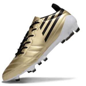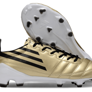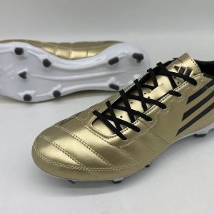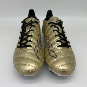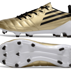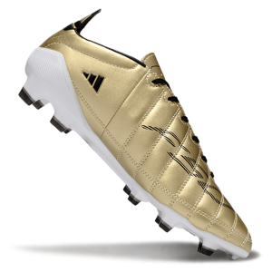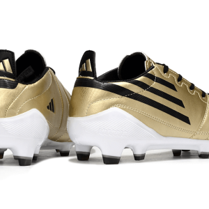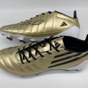 Blending legacy and performance in one bold design, the Adidas F50 FG Lace-Up Elite – Gold/Black Edition redefines lightweight speed. With a shimmering metallic gold upper, stealthy black stripes, and a streamlined lace-up construction, this elite boot pays homage to the iconic F50 series while delivering modern acceleration on firm ground.