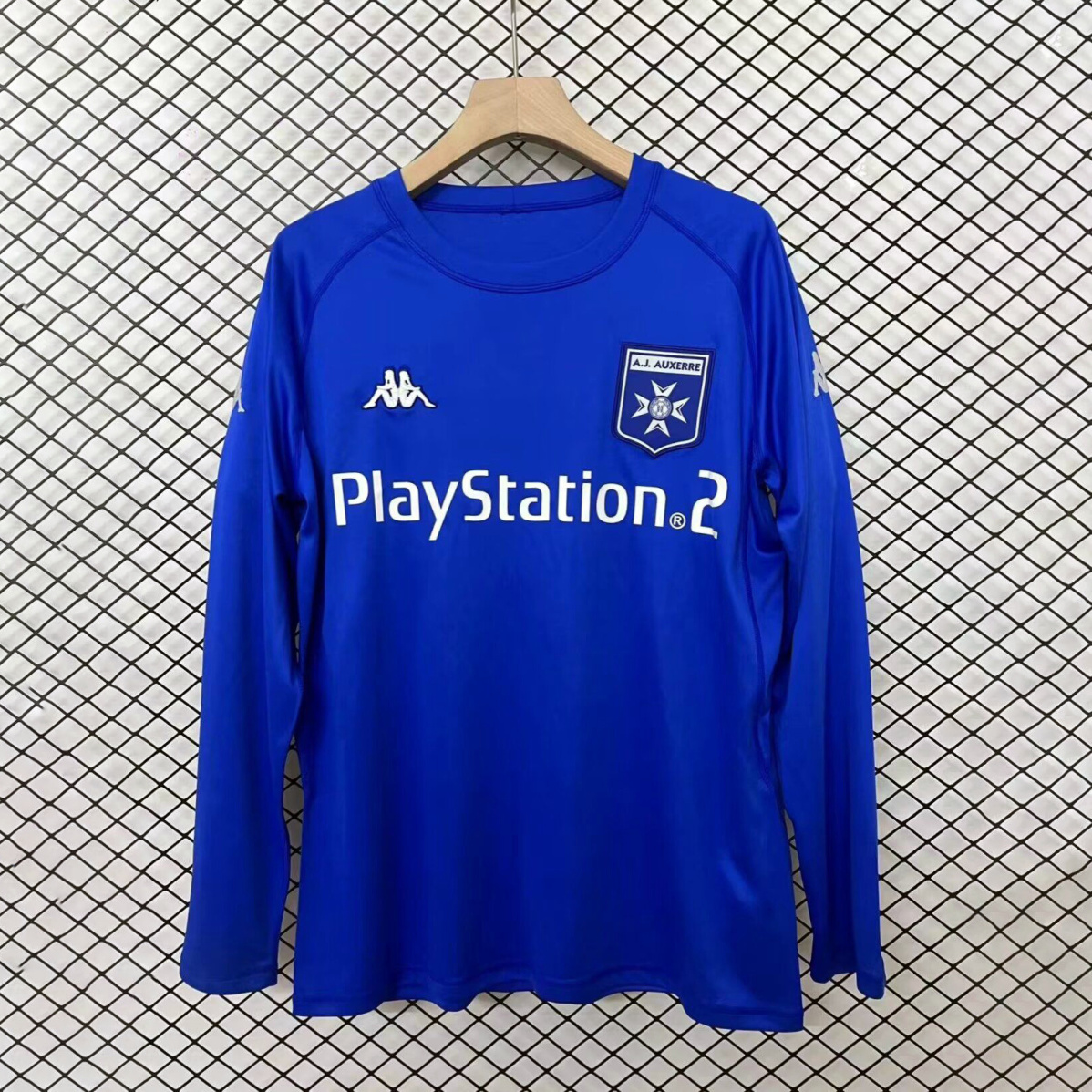 The 2003/04 AJ Auxerre long sleeve away shirt featured a stylish blue design with white accents on the collar, shoulders, and cuffs, paired with blue shorts and socks. It displayed the PlayStation 2 sponsor across the chest alongside the club crest, perfectly matching the modern look of early-2000s French football kits. Worn by key players such as Djibril Cissé, Philippe Mexès, and Bonaventure Kalou, this kit accompanied Auxerre through their Ligue 1 and UEFA Cup campaigns, representing one of the most successful periods in the club’s modern history.