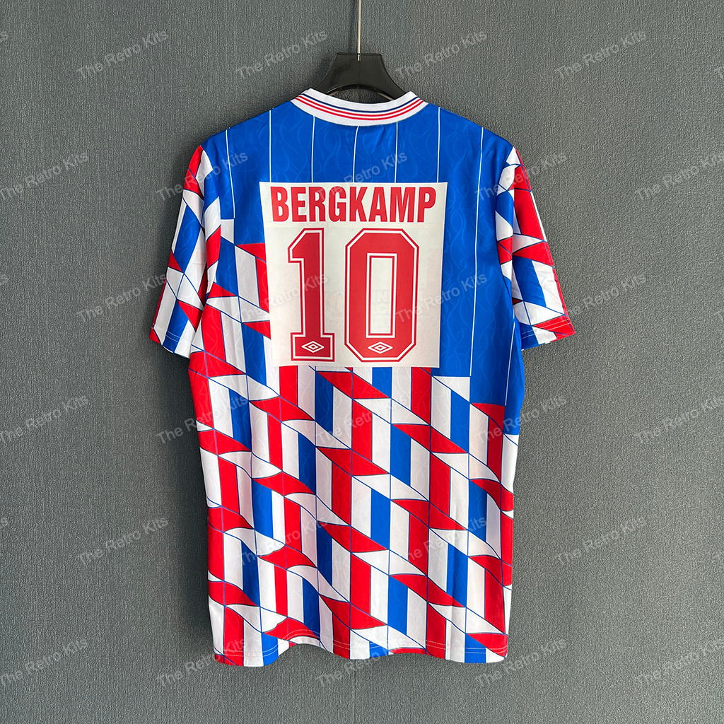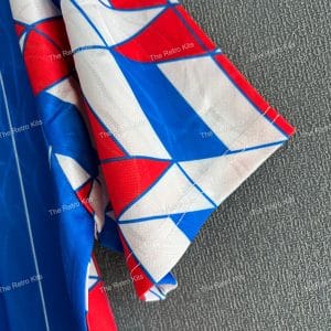 The 1989/1990 Ajax Amsterdam away shirt featured a navy blue design with a bold red vertical stripe running down the left side, paired with navy shorts and socks. It displayed the TDK sponsor across the chest alongside the Ajax crest, creating a sleek and modern look for the late 1980s. Worn by players such as Dennis Bergkamp, Frank de Boer, and Jan Wouters, this kit is remembered from a successful era in Dutch football, representing Ajax’s sharp identity and commitment to elegant, attacking play.