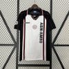 The 1995/96 Ajax away shirt featured a bold dark blue design with red vertical accents, highlighted by the ABN AMRO sponsor running down the chest. Worn by players such as Jari Litmanen, Patrick Kluivert, and Edgar Davids, this kit represented Ajax during their Eredivisie title defense and their run to the UEFA Champions League final.