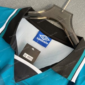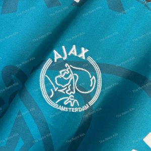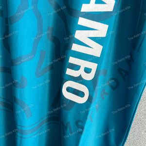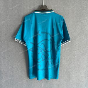 The 1995/96 Ajax away shirt featured a bold dark blue design with red vertical accents, highlighted by the ABN AMRO sponsor running down the chest. Worn by players such as Jari Litmanen, Patrick Kluivert, and Edgar Davids, this kit represented Ajax during their Eredivisie title defense and their run to the UEFA Champions League final.