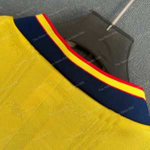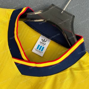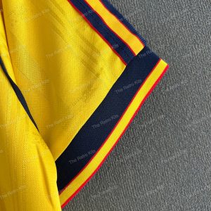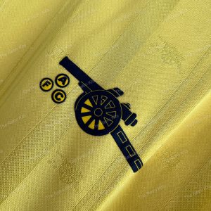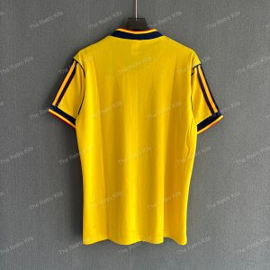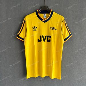 The 1986–88 Arsenal away shirt featured a classic yellow design with navy trim on the V-neck collar and sleeves, paired with yellow shorts and socks. It carried the JVC sponsor across the chest, marking the early years of one of Arsenal’s most famous shirt partnerships. Worn by players such as Tony Adams, David Rocastle, and Michael Thomas, this kit represented the Gunners during a transitional period that laid the foundations for future success under George Graham.