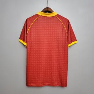 Worn by Giuseppe Giannini, Rudi Völler, and Aldair during a memorable season in which the Giallorossi reached the UEFA Cup Final and finished as runners-up in the Coppa Italia, showcasing their strength in both domestic and European competitions.