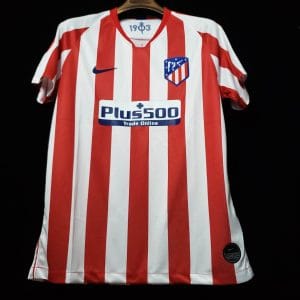 The 2019/20 Atlético Madrid home shirt featured the club’s traditional red and white vertical stripes, with added subtle diagonal effects, paired with the Plus500 sponsor across the chest. Worn by players such as João Félix, Koke, and Diego Costa, this kit was part of the season where Atleti reached the UEFA Champions League quarter-finals and finished third in La Liga.