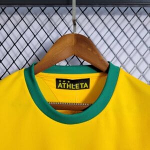 The 1974 Brazil home shirt carried the nation’s iconic yellow design with green trim, paired with blue shorts and white socks. Worn by legends like Jairzinho, Rivellino, and Paulo César, this kit was used at the 1974 FIFA World Cup in West Germany, where Brazil reached the second group stage while defending their title.