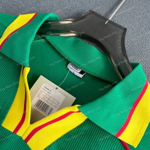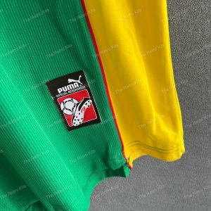 Worn by Rigobert Song, Patrick Mboma, and Marc-Vivien Foé during the 1998 FIFA World Cup in France, where the Indomitable Lions showcased their trademark physicality and flair despite a challenging group-stage exit.