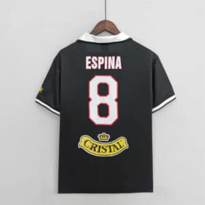 The 1997 Colo-Colo away shirt featured a black design with white trim, paired with the iconic Cristal sponsor across the chest. It offered a sharp contrast to the traditional all-white home kit, while maintaining the club’s classic identity. Worn by players such as Marcelo Barticciotto, Fernando Vergara, and José Luis Sierra, this kit accompanied Colo-Colo through domestic league and Copa Libertadores fixtures in the late 1990s.
