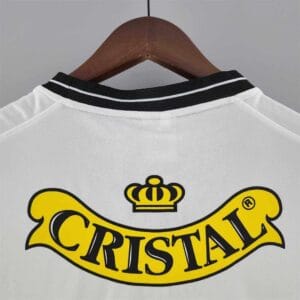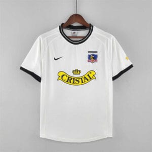 The 2001/02 Colo-Colo home shirt featured a traditional all-white design with black trim, paired with black shorts and white socks. The kit carried the Cristal sponsor across the chest, a long-time symbol associated with the Chilean club. Worn by players such as Marcelo Barticciotto, Manuel Neira, and Luis Mena, this shirt represented Colo-Colo during a challenging period leading up to the club’s financial crisis in 2002, but still maintained its iconic identity as Chile’s most decorated team.