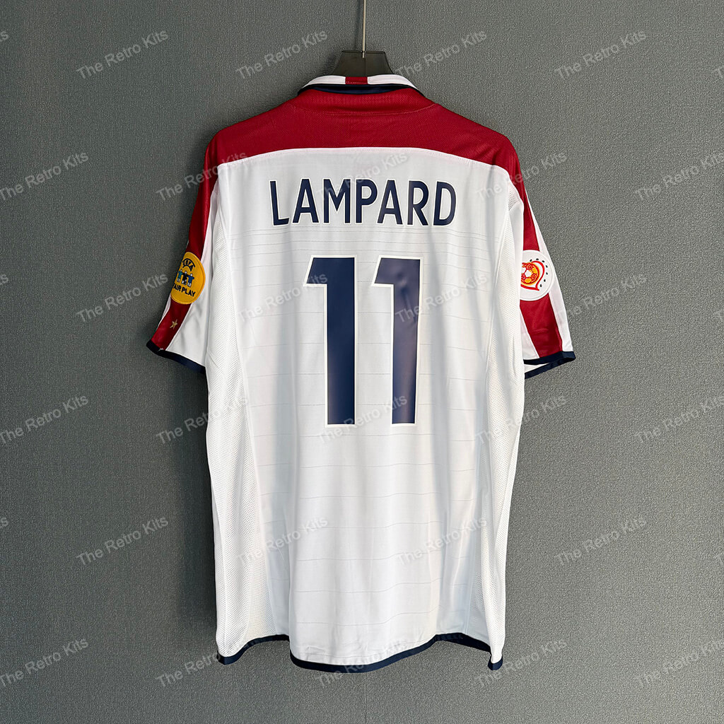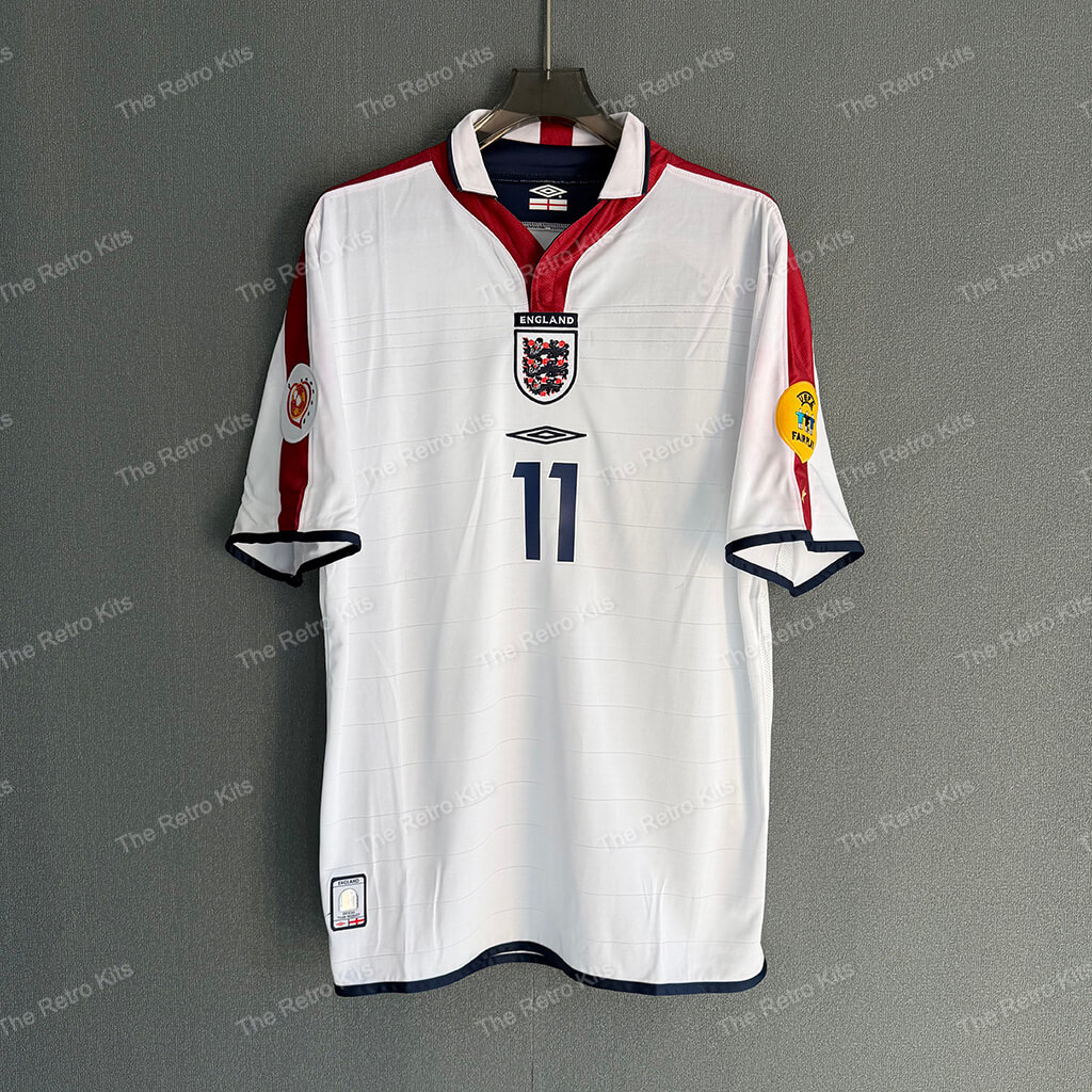 Worn by David Beckham, Wayne Rooney, and Steven Gerrard during England’s Euro 2004 campaign, including memorable group-stage performances and a quarter-final finish under Sven-Göran Eriksson.