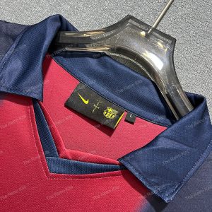 Worn by Xavi, Rivaldo, and Carles Puyol during a turbulent season of transition marked by Champions League elimination and dramatic league finale.