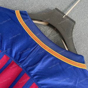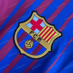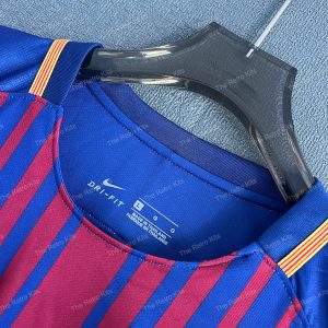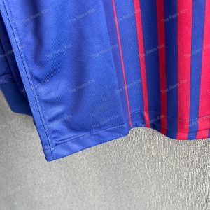 The 2017/18 Barcelona home shirt introduced a fresh look with narrow fading red stripes on a deep blue base, modernizing the club’s iconic Blaugrana design. Featuring the Rakuten sponsor for the first time, the kit was worn by legends like Lionel Messi, Andrés Iniesta, and Luis Suárez during a season that saw Barça win the La Liga and Copa del Rey double.