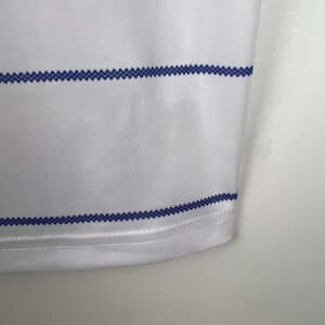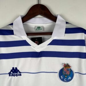 The 1985/86 FC Porto away shirt featured a clean white design with blue trim, providing a sharp contrast to the club’s traditional striped home kit. It carried the Revigres sponsor across the chest, a partnership that became iconic in Porto’s history. Worn by players such as Fernando Gomes, Paulo Futre, and António Sousa, this kit represented the team during a strong domestic campaign that laid the foundations for their European triumph the following year.