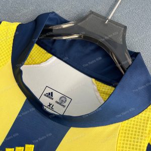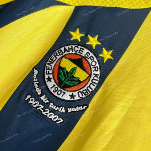 The 2007/08 Fenerbahçe home shirt featured the club’s iconic yellow and navy blue vertical stripes, with the Avea sponsor across the chest. Paired with navy shorts and socks, it maintained Fenerbahçe’s classic look. Worn by stars such as Alex de Souza, Roberto Carlos, and Semih Şentürk, this kit became memorable as the club enjoyed a historic run to the UEFA Champions League quarter-finals, while also competing strongly in the Turkish Süper Lig.