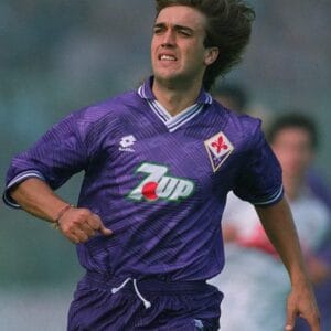 Worn by Gabriel Batistuta (debut season), Francesco Baiano, Brian Laudrup, Stefan Effenberg and Marco Nappi during their Serie A survival campaign