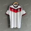 The 1994 Germany away shirt featured a green base with a bold black, red, and gold diamond pattern across the shoulders, echoing the home version. Paired with white shorts and green socks, it carried the DFB eagle crest. Worn by Klinsmann, Matthäus, and Andreas Möller, this kit was used at the 1994 FIFA World Cup in the USA, where Germany reached the quarter-finals.