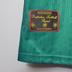 The 1996 Germany away shirt featured a green design with white trim, a modernised take on the nation’s traditional away colour. It included the three stars above the DFB crest, marking Germany’s World Cup triumphs. Worn by players such as Jürgen Klinsmann, Andreas Köpke, and Matthias Sammer, this kit was part of Germany’s victorious campaign at UEFA Euro 1996 in England.