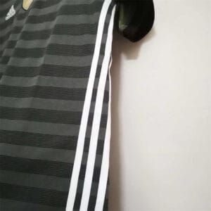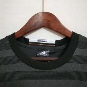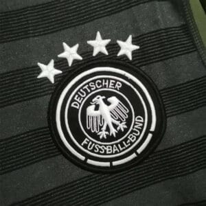 The 2016 Germany away shirt featured a unique reversible design: dark grey with lime green trim on the outside, and a green training-bib print inside, inspired by street and amateur football. Paired with dark grey shorts and socks, it carried the DFB eagle crest with four stars. Worn by players such as Mesut Özil, Thomas Müller, and Toni Kroos, this kit was used at UEFA Euro 2016 in France, where Germany reached the semi-finals.