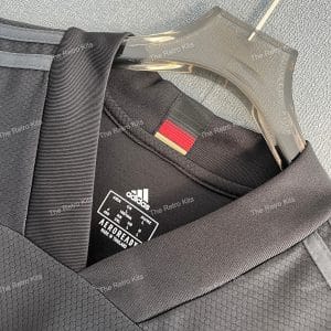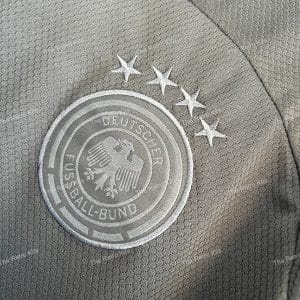 The 2020 Germany away shirt featured a modern black design with subtle horizontal pinstripes, paired with black shorts and socks for an all-dark look. It carried the Adidas logo and DFB crest in white, alongside four stars above the badge to represent Germany’s World Cup titles. Worn by players such as Toni Kroos, Serge Gnabry, and Joshua Kimmich, this kit was used in UEFA Nations League and Euro 2020 qualifiers.
