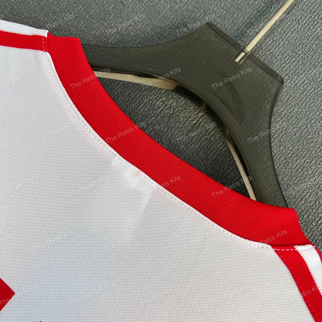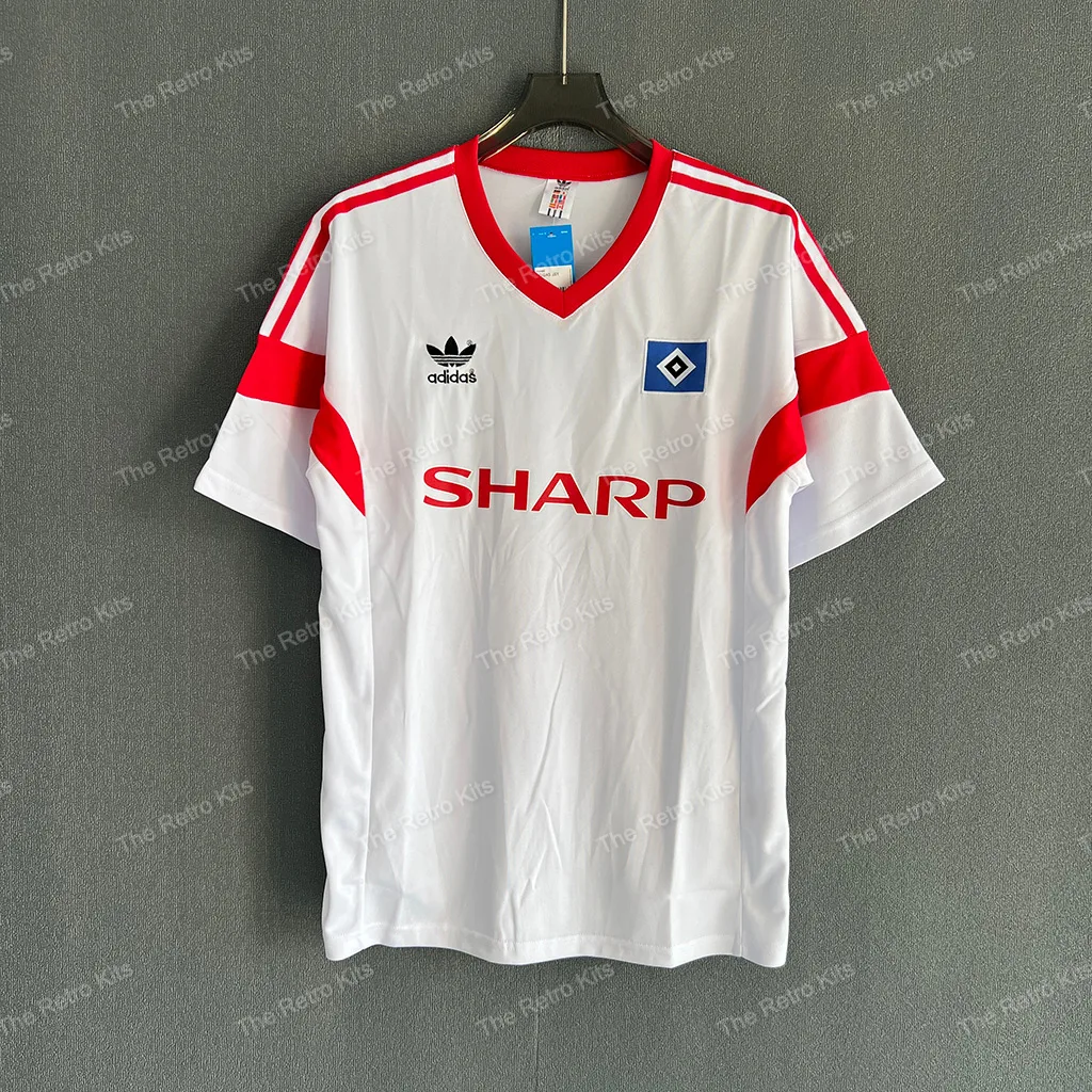 The 1987/88 Hamburger SV home shirt featured the club’s traditional white design with red shorts and socks, staying true to HSV’s iconic look. It carried the Sharp sponsor across the chest, marking the beginning of a new partnership. Worn by players such as Thomas von Heesen, Manfred Kaltz, and Wolfram Wuttke, this kit represented HSV in the Bundesliga as the club aimed to compete with Germany’s top sides in the late 1980s.