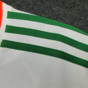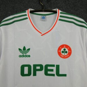 Worn by Packie Bonner, Paul McGrath, and Kevin Sheedy during their iconic debut at the FIFA World Cup in Italy, reaching the quarter-finals in a historic run under Jack Charlton.