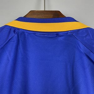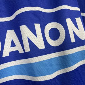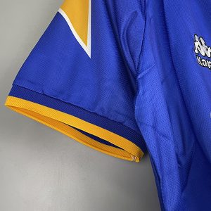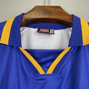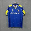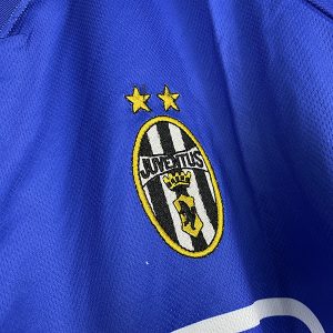 The 1994/95 Juventus away shirt featured a blue design with bold yellow stars across the shoulders, proudly displaying the Danone sponsor across the chest. Worn by stars such as Roberto Baggio, Alessandro Del Piero, and Gianluca Vialli, this striking kit became iconic as Juventus lifted the Serie A title and the Coppa Italia, completing a historic domestic double under Marcello Lippi.