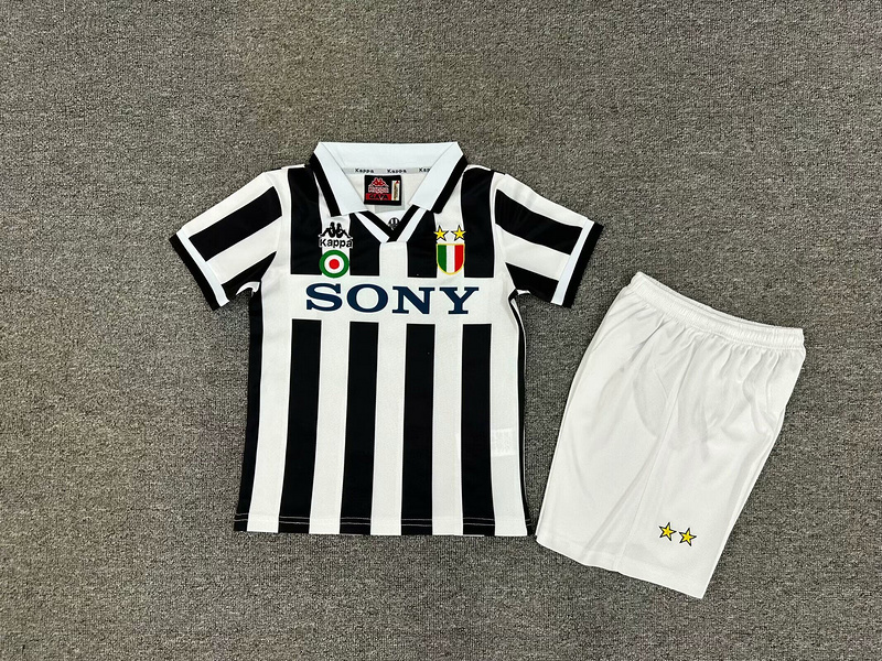 The 1995/96 Juventus home shirt featured the club’s classic black and white stripes, paired with black shorts and white socks. The kit carried the Sony sponsor across the chest. Worn by legends such as Alessandro Del Piero, Gianluca Vialli, and Fabrizio Ravanelli, this shirt became iconic as Juventus lifted the UEFA Champions League, defeating Ajax on penalties in Rome to secure their second European crown.