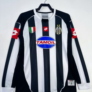 The 2002/03 Juventus Champions League home shirt featured the club’s traditional black and white stripes, paired with black shorts and white socks. Unlike the domestic version, which carried the Fastweb sponsor, the European edition displayed the Tamoil sponsor across the chest. Worn by stars such as Alessandro Del Piero, Pavel Nedvěd, David Trezeguet, and Gianluigi Buffon, this kit became iconic during Juve’s run to the UEFA Champions League Final at Old Trafford, where they faced AC Milan.