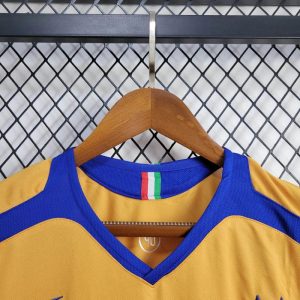 The 2005/06 Juventus third shirt featured a bright yellow design with blue trim, carrying the Tamoil sponsor across the chest. Worn by players such as Alessandro Del Piero, Zlatan Ibrahimović, and Pavel Nedvěd, this kit stood out as Juve’s bold alternative look during domestic and European fixtures. It became part of a controversial season where Juventus dominated Serie A on the pitch before the campaign was later overshadowed by the Calciopoli scandal.