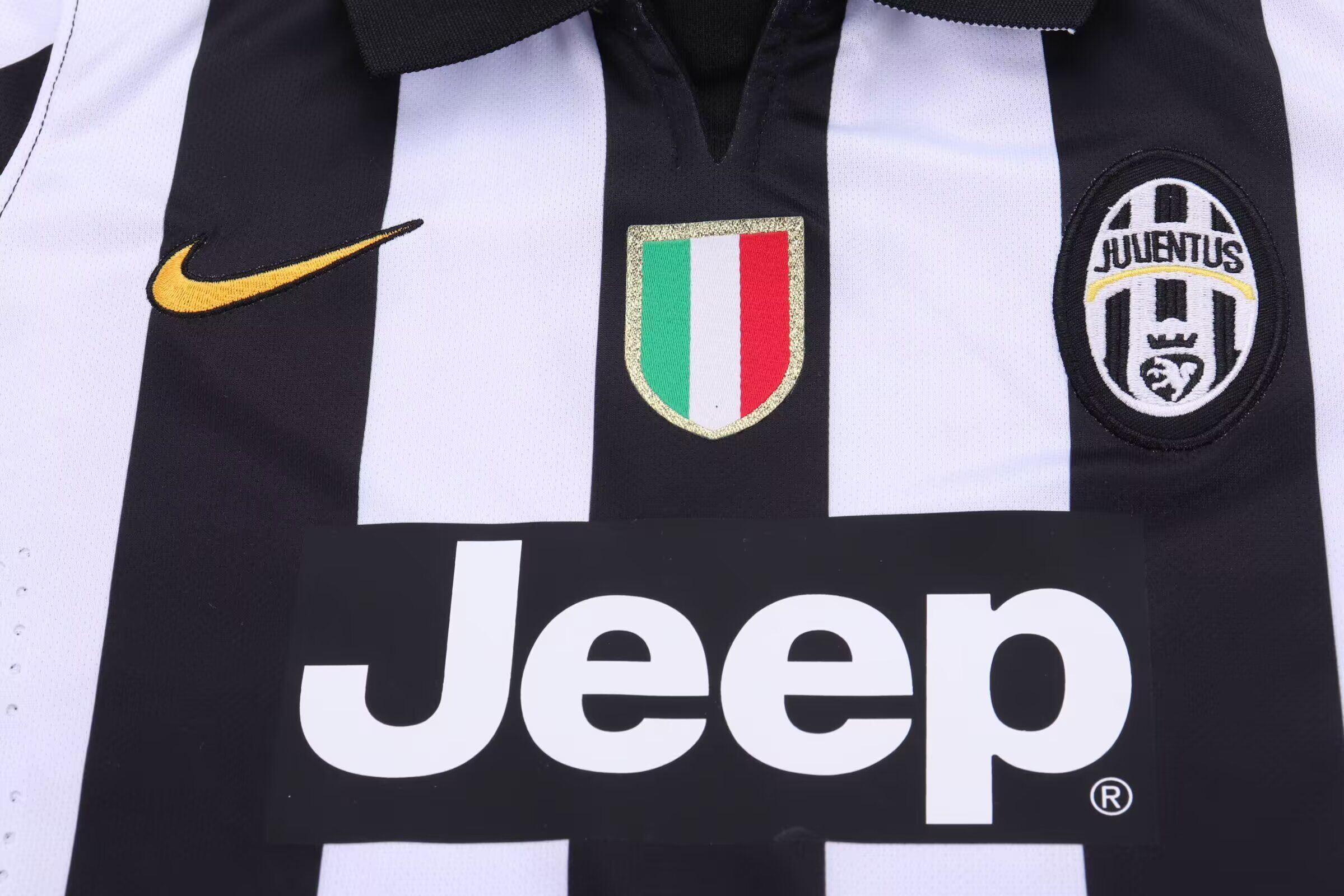 The 2014/15 Juventus home shirt featured the club’s classic black and white vertical stripes, with a clean modern look and the Jeep sponsor across the chest. Worn by stars such as Andrea Pirlo, Paul Pogba, Carlos Tévez, and Gianluigi Buffon, this kit became iconic as Juventus won the Serie A title, lifted the Coppa Italia, and reached the UEFA Champions League Final in Berlin, where they faced Barcelona.