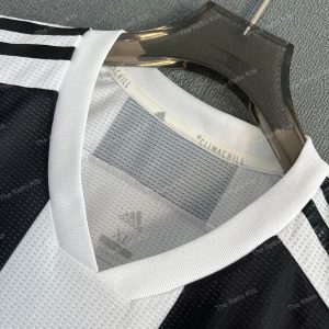 The 2018/19 Juventus home shirt broke tradition with a minimalist black-and-white design, featuring two bold vertical stripes instead of the classic thinner stripes. It carried the Jeep sponsor across the chest. Worn by stars such as Cristiano Ronaldo, Paulo Dybala, and Giorgio Chiellini, this kit became iconic as Juventus won their eighth consecutive Serie A title, with Ronaldo shining in his debut season in Turin.