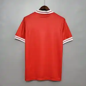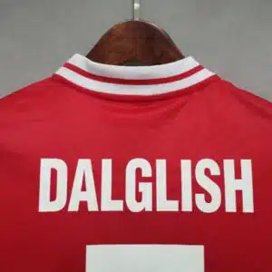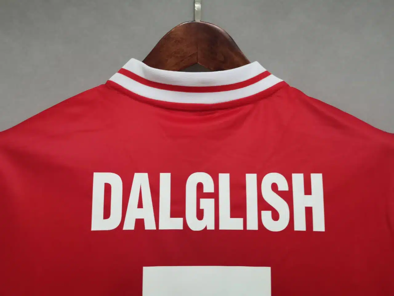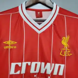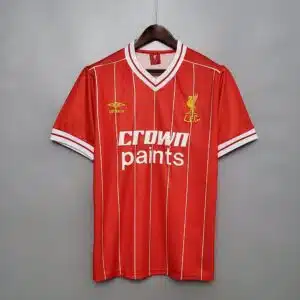 The 1983–85 Liverpool home shirt featured a classic all-red design with pinstripes, proudly displaying the Crown Paints sponsor across the chest. Worn by legends such as Kenny Dalglish, Ian Rush, and Alan Hansen, this kit represented Liverpool during a dominant era in which they won the 1983/84 First Division, the 1984 European Cup in Rome, and multiple domestic honours under Joe Fagan.