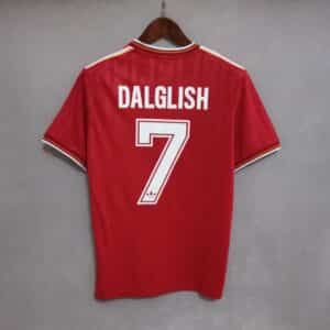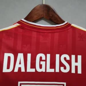 The 1985/86 Liverpool home shirt featured a classic all-red design with white V-neck and cuffs, proudly displaying the Crown Paints sponsor across the chest. Worn by players such as Kenny Dalglish, Ian Rush, and Alan Hansen, this kit became legendary as Liverpool won the First Division and FA Cup double, the first in the club’s history. Dalglish, serving as player-manager, scored the decisive goal against Chelsea to clinch the league title before completing the double at Wembley.