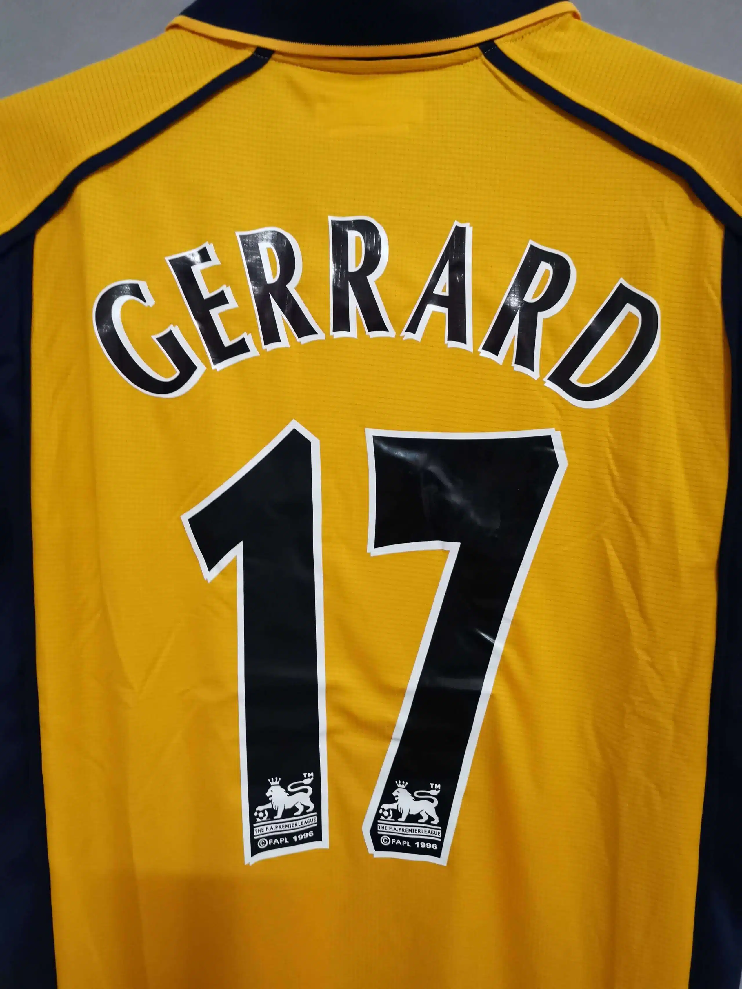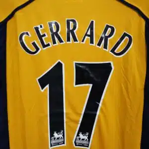The 2000/01 Liverpool away shirt featured a cream and navy design with red trim, proudly displaying the Carlsberg sponsor across the chest. Worn by players such as Steven Gerrard, Michael Owen, and Emile Heskey, this kit became iconic as Liverpool achieved a historic cup treble, winning the FA Cup, League Cup, and UEFA Cup, along with the UEFA Super Cup.