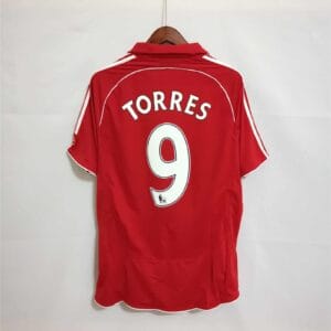 The 2006–08 Liverpool home shirt featured a classic all-red design with white trim, proudly displaying the Carlsberg sponsor across the chest. Worn by players such as Steven Gerrard, Xabi Alonso, and Jamie Carragher, this kit represented Liverpool in the Premier League and the UEFA Champions League, including their run to the 2007 final in Athens against AC Milan.