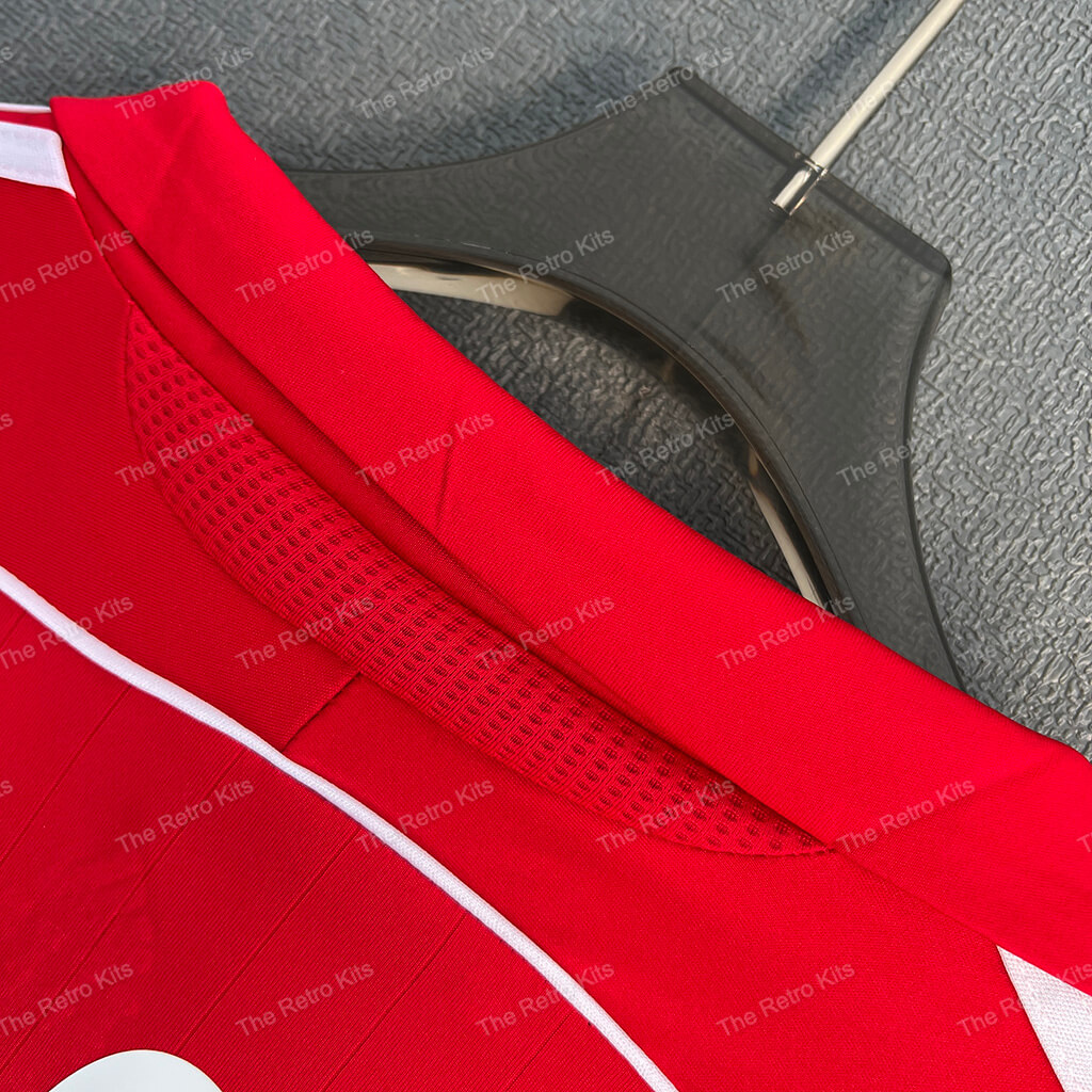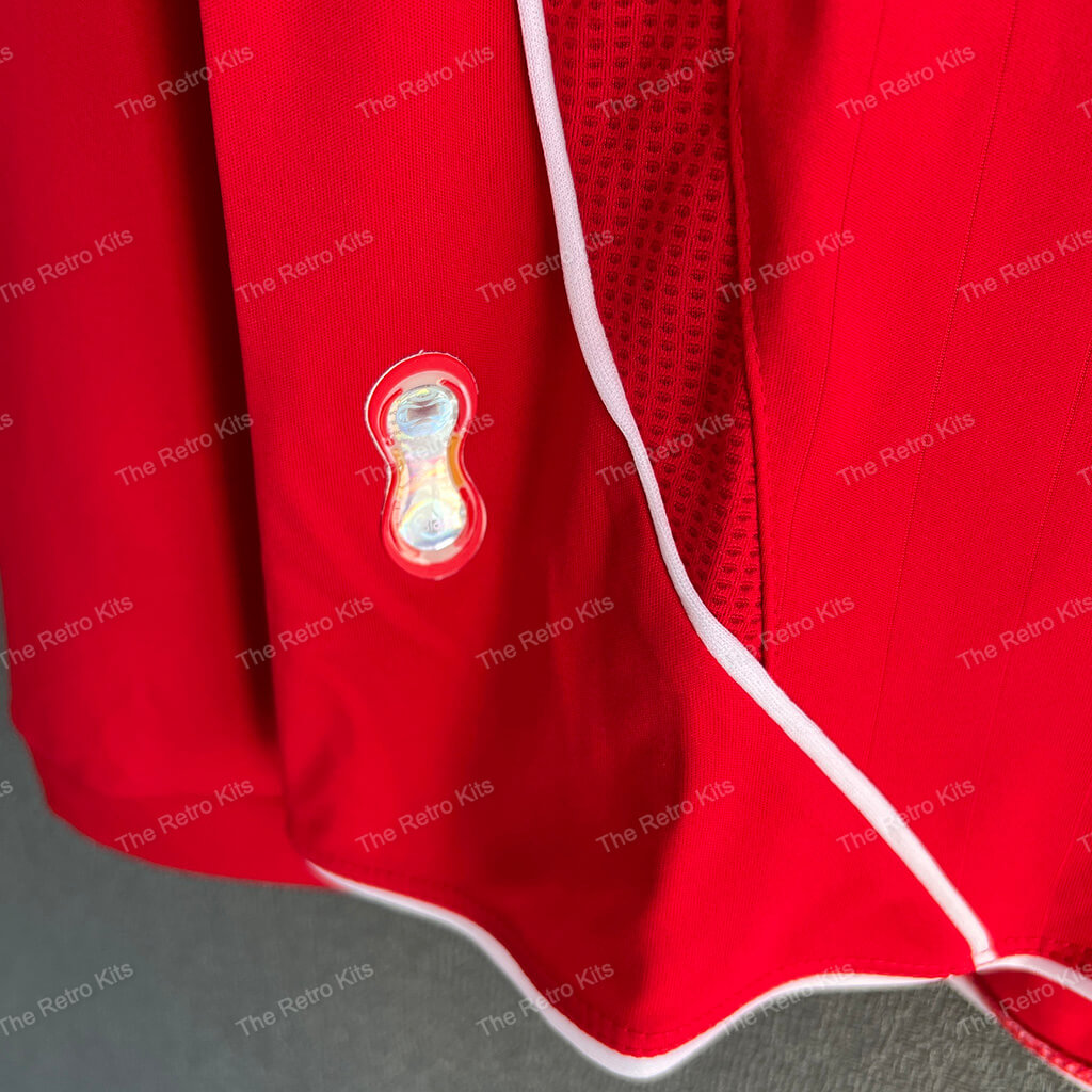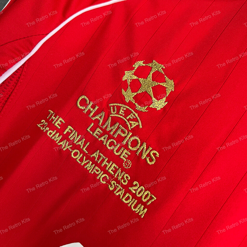 The Liverpool FC 2008 Champions League Final Kit – Long Sleeve featured a classic red design with white piping along the shoulders and sleeves, paired with matching long red cuffs for a clean, traditional look. It carried the Carlsberg sponsor across the chest and the gold Champions League patches on the sleeves, marking Liverpool’s status as one of Europe’s elite clubs. The shirt also included the special Athens 2007/08 final embroidery beneath the crest, giving it a unique match-specific identity. Worn by stars such as Steven Gerrard, Fernando Torres, Jamie Carragher, and Xabi Alonso, this long-sleeve version remains a fan favourite for its elegant simplicity and its connection to Liverpool’s continued European pedigree during the late 2000s.