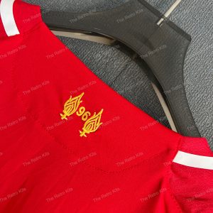 The 2014/15 Liverpool home shirt featured a classic all-red design with white pinstripes and trim, paired with the Standard Chartered sponsor across the chest. Worn by players such as Steven Gerrard, Raheem Sterling, and Philippe Coutinho, this kit represented Liverpool during Gerrard’s final season at Anfield, as the club competed in the Premier League and returned to the UEFA Champions League.