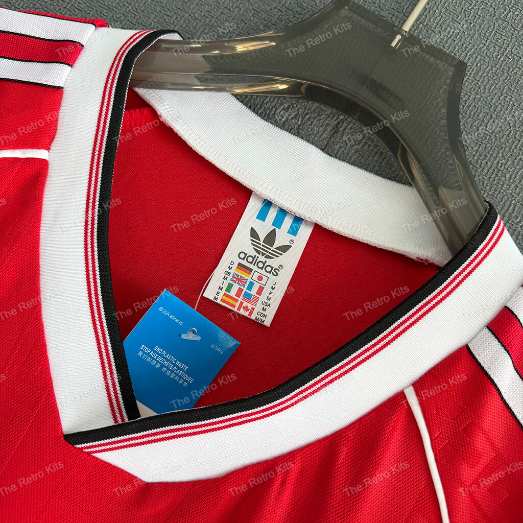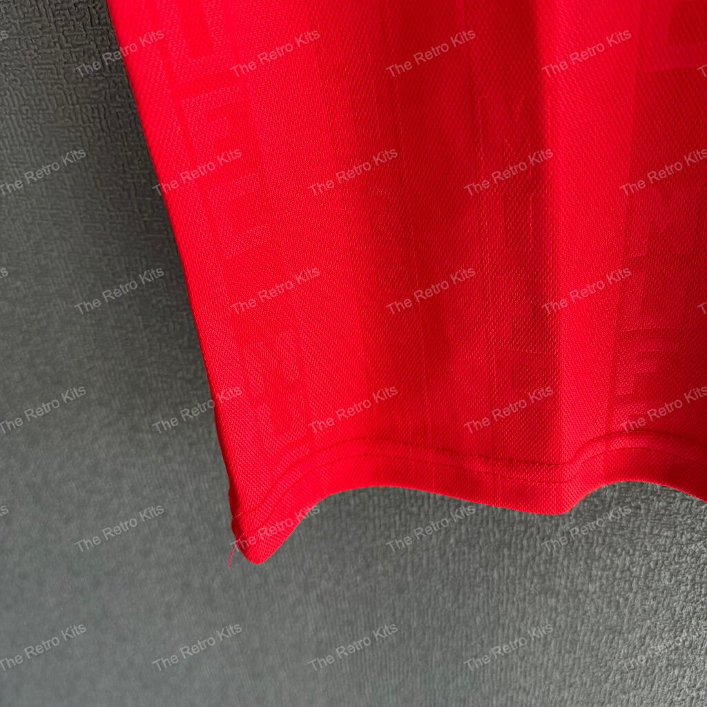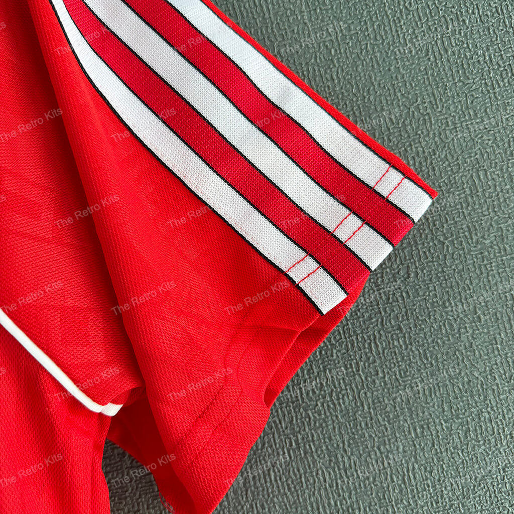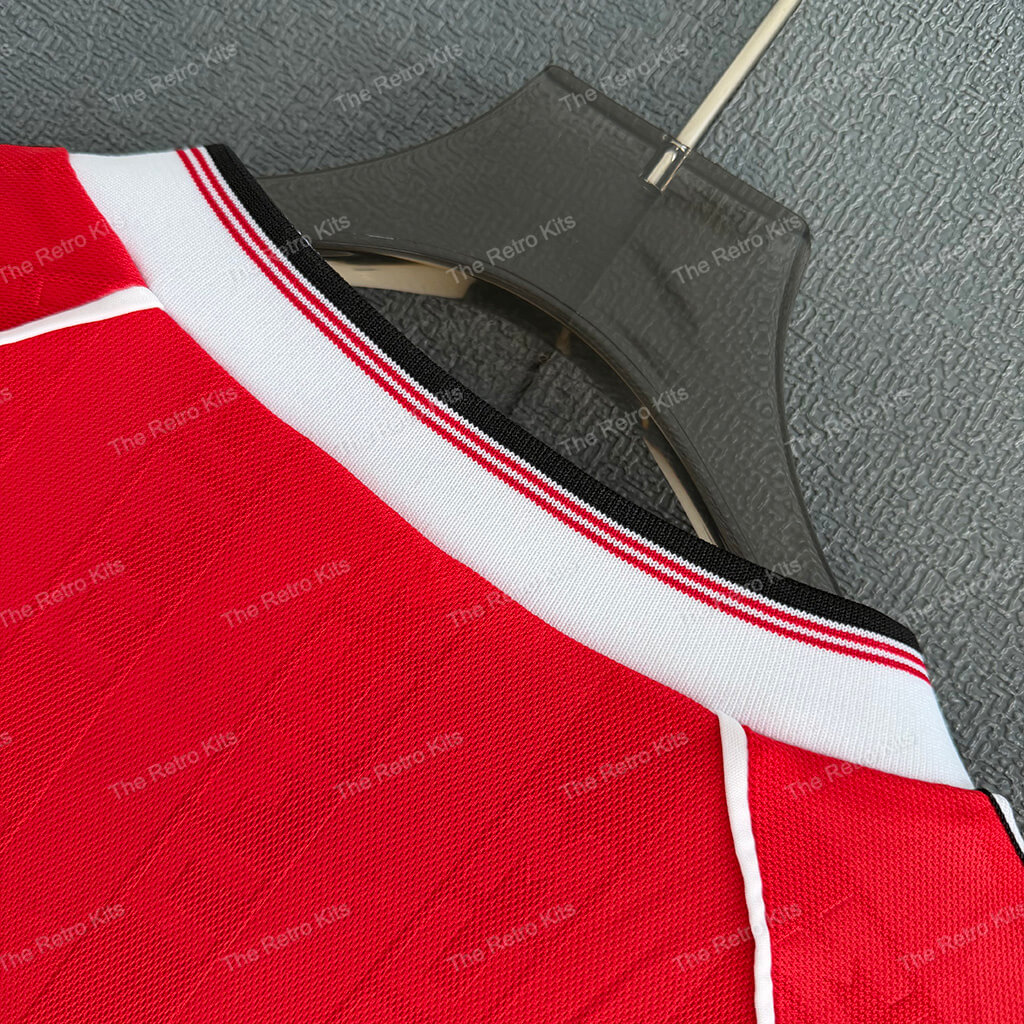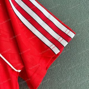 The Manchester United 2019/2020 Home Kit paid tribute to the club’s treble-winning season with a classic red design featuring subtle black trim on the collar and sleeves. Unique time-stamped badges on the sleeves referenced the decisive late goals of the 1999 Champions League Final, while the Chevrolet sponsor and black club crest completed the modern look. Worn by stars such as Marcus Rashford, Bruno Fernandes, and Anthony Martial, this shirt blended heritage and contemporary style during an exciting season for the club.