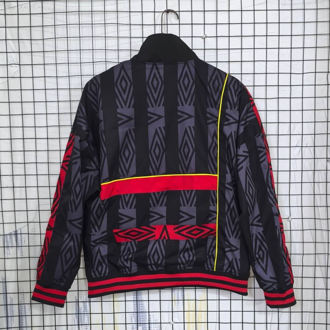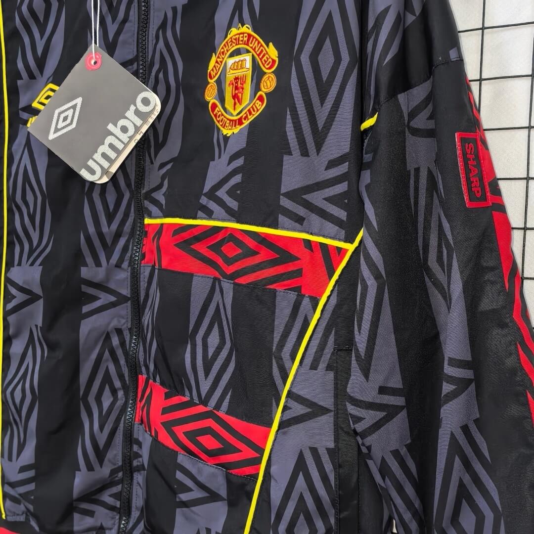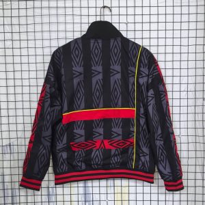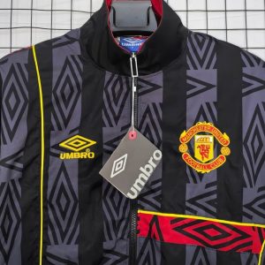 The 2002/03 Manchester United black training suit featured a sleek black design with red detailing on the shoulders and sleeves, paired with matching black training pants. It displayed the Vodafone sponsor across the chest alongside the club crest. Worn by stars such as Roy Keane, Rio Ferdinand, and Ruud van Nistelrooy during training sessions, this suit became part of the iconic look of United’s squad in the season they captured the Premier League title, powered by Van Nistelrooy’s prolific scoring and Sir Alex Ferguson’s leadership.