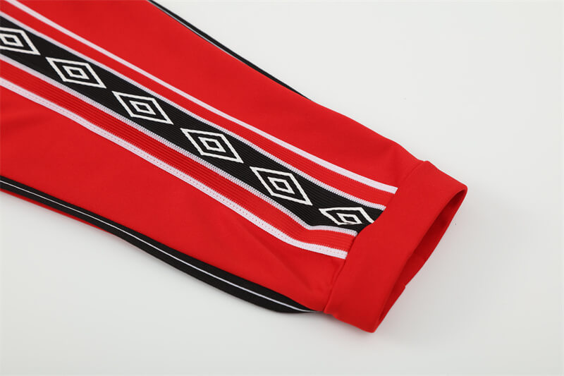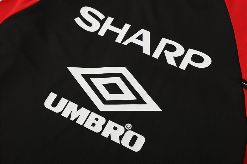 The 1998/99 Manchester United training suit featured a black design with red and white accents, proudly carrying the Umbro logo and Sharp sponsor alongside the club crest. Worn by legendary players such as David Beckham, Ryan Giggs, and Roy Keane, this training gear became iconic as part of the season where United achieved an unforgettable historic treble, winning the Premier League, FA Cup, and UEFA Champions League.