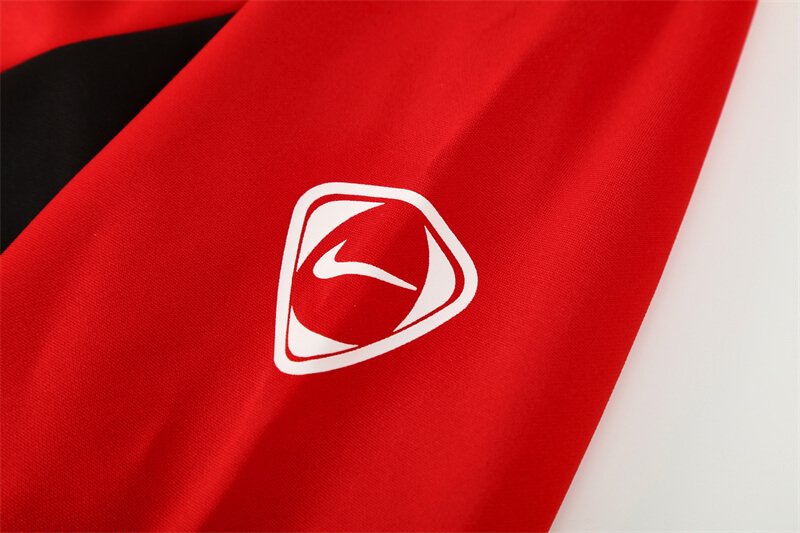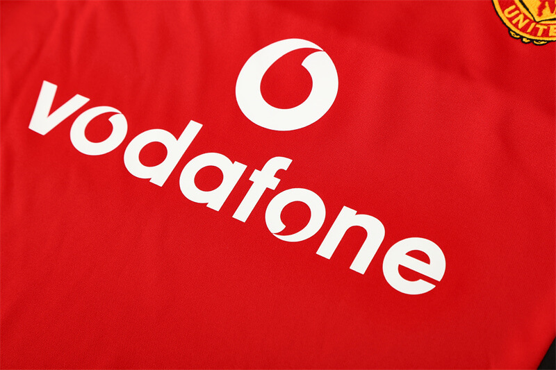 The 2002/03 Manchester United red training suit featured a bright red top with black detailing, paired with matching black trousers. It carried the Vodafone sponsor, Nike swoosh, and club crest, reflecting the style of the early 2000s. Worn by players such as Ryan Giggs, Ruud van Nistelrooy, and Paul Scholes, this training gear became part of United’s preparation during the season in which they won the Premier League title, finishing ahead of Arsenal.