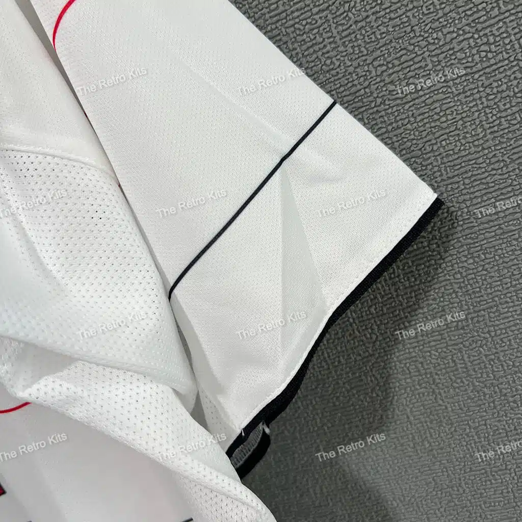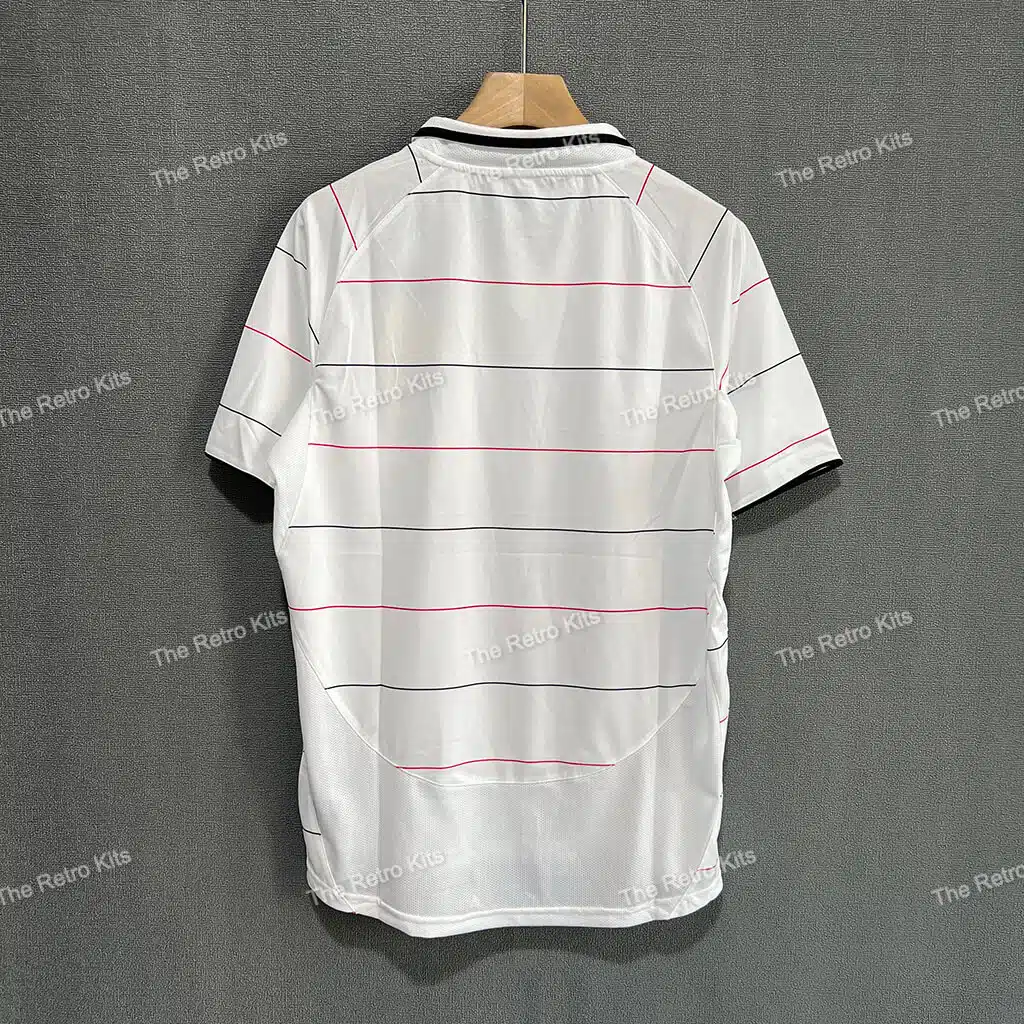 Worn by Ruud van Nistelrooy, Cristiano Ronaldo, and Ryan Giggs during a transitional period under Sir Alex Ferguson, highlighted by domestic cup success and the rise of Ronaldo as a global superstar.