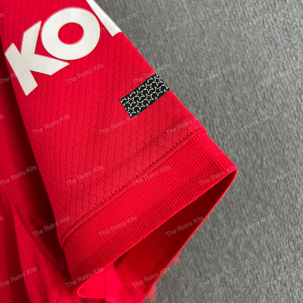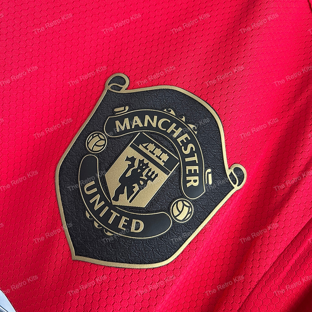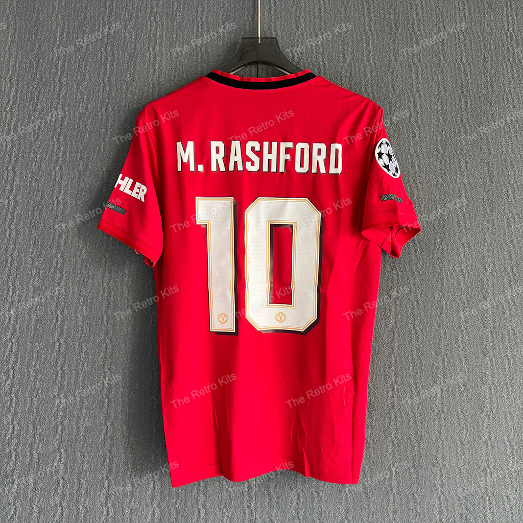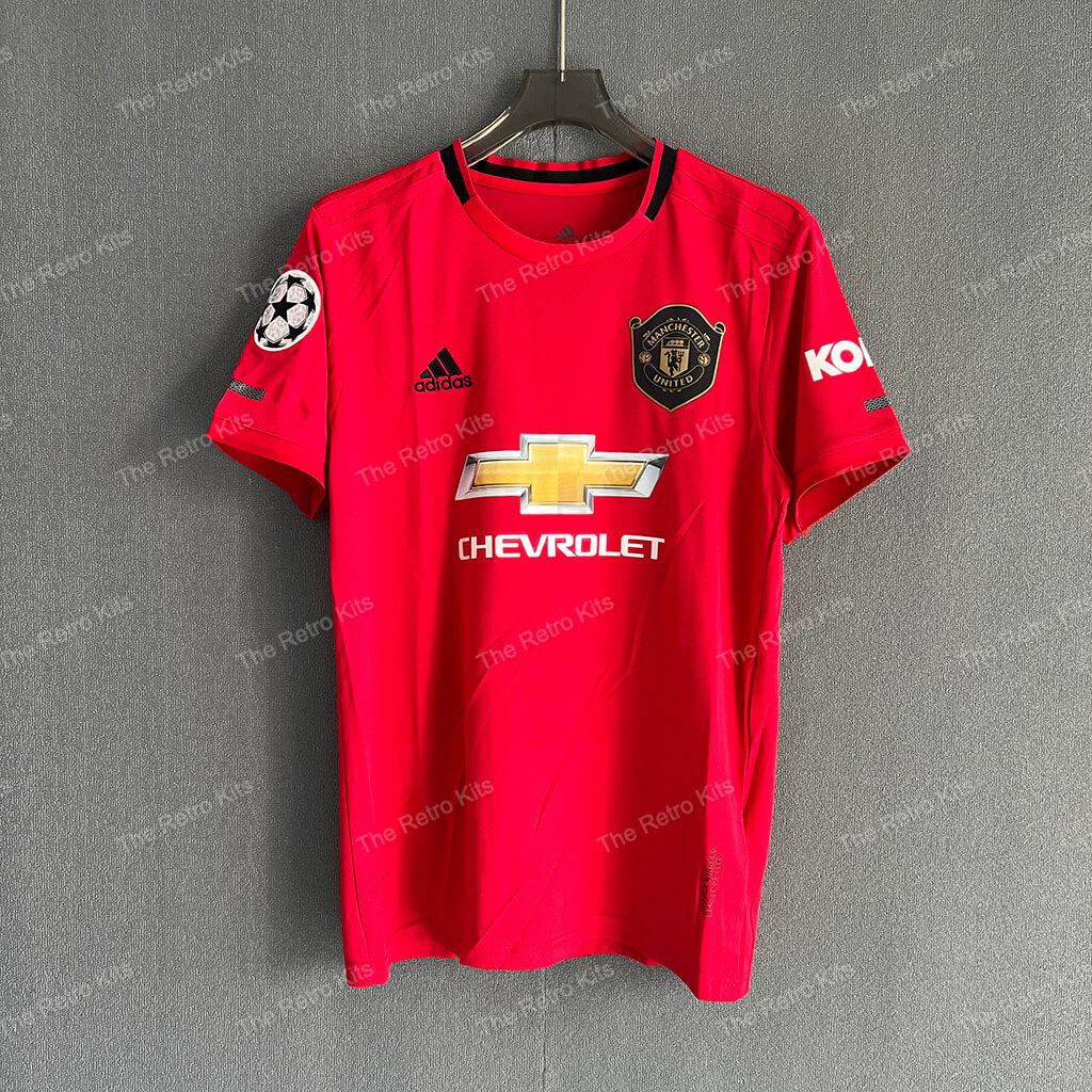 The Manchester United 2019/2020 Home Kit paid tribute to the club’s treble-winning season with a classic red design featuring subtle black trim on the collar and sleeves. Unique time-stamped badges on the sleeves referenced the decisive late goals of the 1999 Champions League Final, while the Chevrolet sponsor and black club crest completed the modern look. Worn by stars such as Marcus Rashford, Bruno Fernandes, and Anthony Martial, this shirt blended heritage and contemporary style during an exciting season for the club.