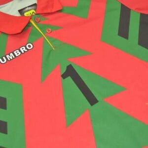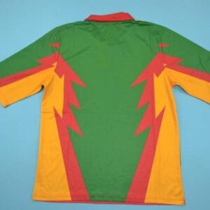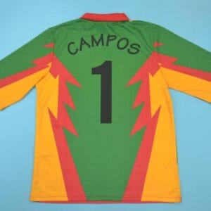 The Mexico 1994 goalkeeper fourth kit featured one of the wildest and most iconic designs of the era, with a vibrant multicolour pattern inspired by Aztec art and geometric shapes, paired with matching shorts and socks. Worn by the legendary Jorge Campos, this kit became instantly recognisable for its bold mix of neon tones, sharp angles, and oversized, freestyle look—perfectly reflecting Campos’ unique personality and revolutionary style between the posts during the mid-1990s.